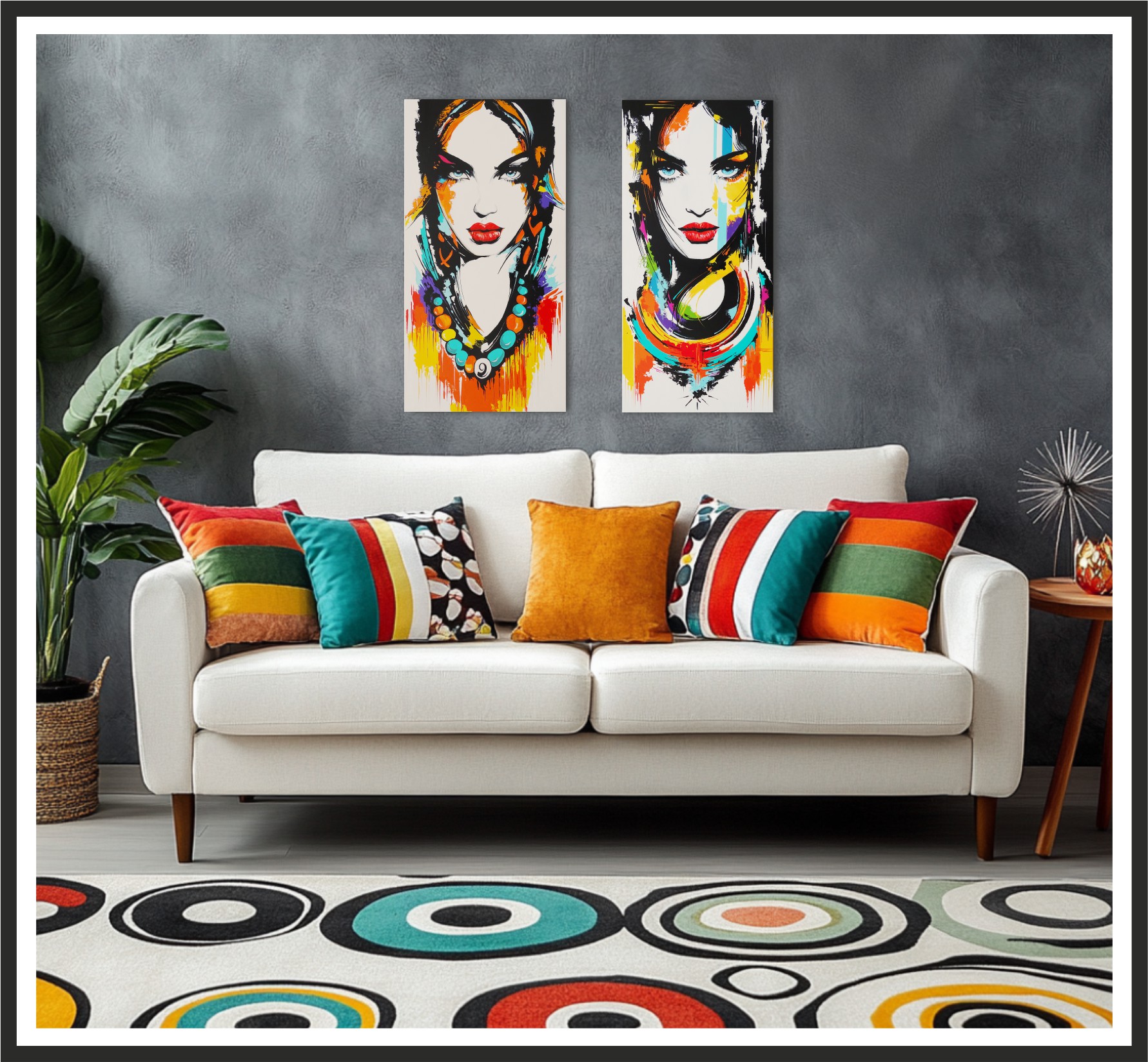 This collection explores the delicate contrast between faded pastel tones and the vivid freshness of femininity. A whimsical female face, young girls among flowers, the graceful gesture of a mature woman's hand, and a bouquet in a vase all whisper to each other across the canvas. Beneath the tired hues lies a quiet vitality — a celebration of womanhood in all its subtle phases.